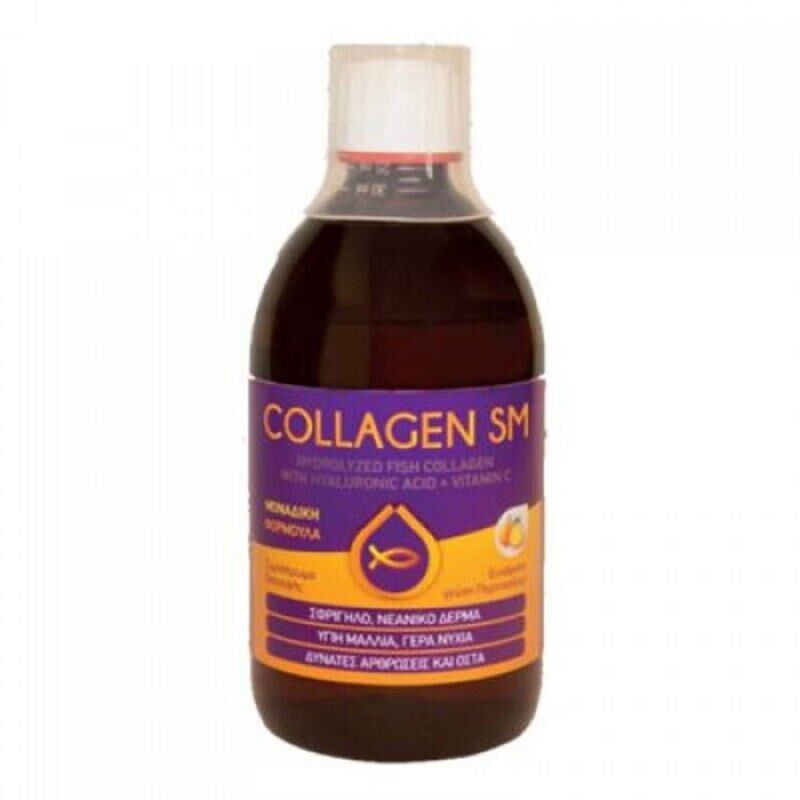 Новиот Collagen SM 500ml е специјална комбинација на активни состојки, кои помагаат да се подобри кожата, косата и ноктите, подобра функција на зглобовите и дава на здравје на целиот организмот. Колаген СМ содржи хидролизиран колаген од риба, хијалуронска киселина, масло од бораџ (омега 6), екстракт од црн пипер и витамини Б6, Ц и Е произведени во Англија и со својата единствена формула може да понуди: - цврста, младешка кожа - здрава коса - јака нокти - Силни зглобови и коски